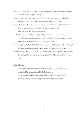 1. ผิวหนังชั้นใดเปนตัวกำหนดอัตราการดูดซึมของยาผ@านผิวหนัง (rate-limiting step)