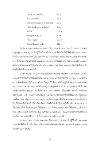 S40) ซึ่งหมายเลข 40 แสดงถึงจำนวนหมู@ oxyethylene ให?ครีมชนิด o/w หรือ polyoxyl 8 stearate