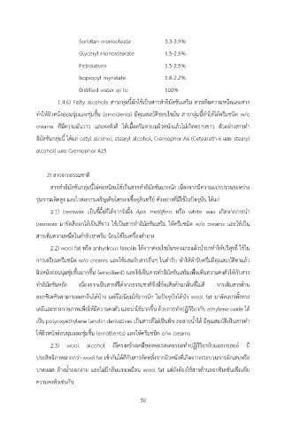 ทำให?ผิวหนังอ@อนนุ@มและชุ@มชื้น (emollients) มีคุณสมบัติชอบไขมัน สารกลุ@มนี้ทำให?ได?ครีมชนิด w/o