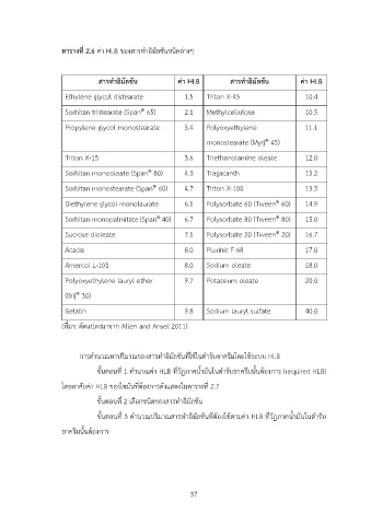 โดยอาศัยค@า HLB ของไขมันที่ต?องการดังแสดงในตารางที่ 2.7