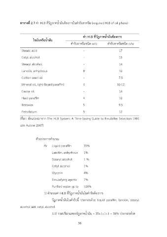 ตารางที่ 2.7 ค@า HLB ที่วฏภาคน้ำมันต?องการในตำรับยาครีม (required HLB of oil phase)