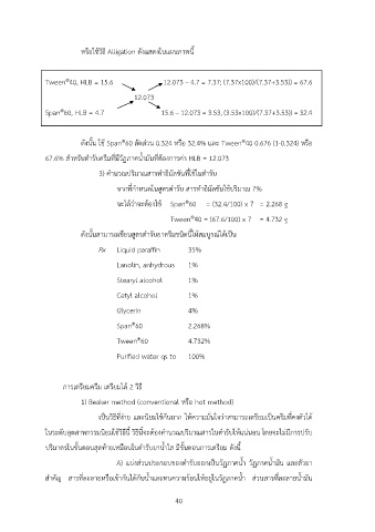 3) คำนวณปริมาณสารทำอิมัลชันที่ใช?ในตำรับ