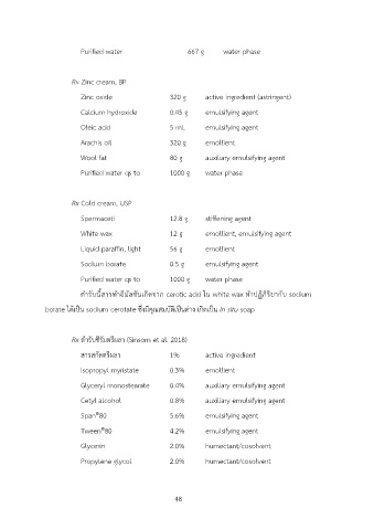 ตำรับนี้สารทำอิมัลชันเกิดจาก cerotic acid ใน white wax ทำปฏิกิริยากับ sodium