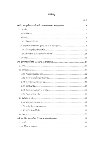บทที่ 2 ยาครีมและโลชัน (Creams and lotions)………………………………………………………………19