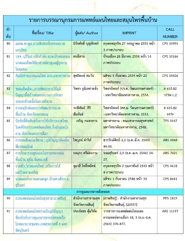 90 การแพทย์แผนไทยในสุขศาลากาฬสินธุ์ ส านักงานสาธาณสุข [กาฬสินธุ์] : ส านักงานสาธาณสุข PPS 1819