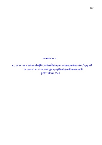 222 ภาคผนวก ก ั ั แบบส ารวจความพึงพอใจผู้ใช้บณฑิตที่มีต่อคุณภาพของบณฑิตระดับปริญญาตรี โท และเอก ตามกรอบมาตรฐานคุณวุฒิระดับอุดมศึกษาแห่งชาติ รุ่นปีการศึกษา 2563