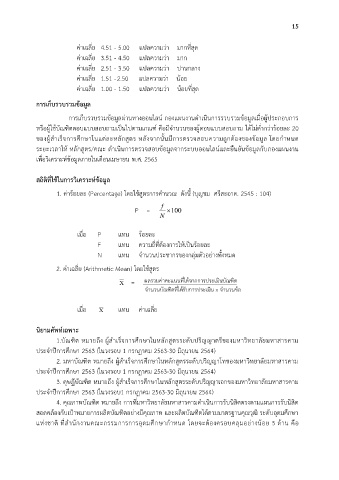 1. ค่าร้อยละ (Percentage) โดยใช้สูตรการค านวณ ดังนี้ (บุญชม ศรีสะอาด. 2545 : 104)