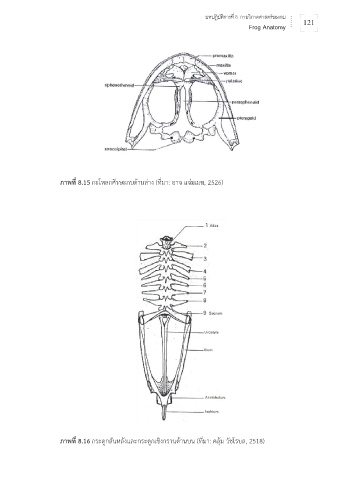 ภาพท 8.15 กะโหลกศรษะกบดานล่าง (ทีมา: อาจ แจ่มเมฆ, 2526)