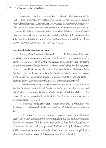 รอบหรือ 1 รอบของวัฏจักรไมโตซิส (ภาพที่ 3.2 และ 3.3) ประกอบดวยระยะตางๆ ดังนี ้